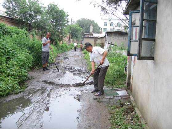 連日的連續(xù)降雨嚴重的影響著居民的日常生活與出行,建豐辦事處奧林社區(qū)全體黨員干部舍小家顧大家一直戰(zhàn)斗在防汛工作前線,在靶場平房區(qū)、南平平房區(qū)、南安平房區(qū)都留下了她們的足跡,奧林社區(qū)轄區(qū)內(nèi)有平房住戶360余戶,房屋居住情況老舊,每逢雨季來臨居民房屋漏損情況時有發(fā)生,院內(nèi)排水不暢很容易產(chǎn)生險情,社區(qū)黨委高度重視百姓群眾的安危。早晨上班時間還沒到,社區(qū)書記宋爽和社區(qū)干部就早早的來到轄區(qū)平房居民住戶家中走訪,詳細的了解居民的住房及工作生活情況,并積極組織社區(qū)志愿者在道路排水堵塞地段挖渠排水引流,保障了居民的日常生活出行,在南安里12-2號平房居民于波家中社區(qū)干部親切詢問起她家的住房情況,得知她是農(nóng)村進城務(wù)工人員,自己身體多病,靠愛人一人打工維持家庭生活,社區(qū)干部立即動起手來幫助她家清理院中的積水,感動的她連連稱謝:“社區(qū)干部真好!你們就是雨后彩虹光照我們居民百姓”。