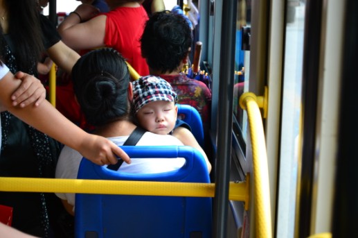 天氣炎熱公交內(nèi)熟睡的嬰孩
