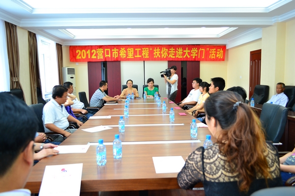 由營口團(tuán)市委、營口晚報(bào)、市希望辦聯(lián)合舉行的2012年?duì)I口市希望工程“青春助學(xué)行動(dòng)”之“扶你走進(jìn)大學(xué)門”新聞助學(xué)金發(fā)放儀式,8月15日在團(tuán)市委一樓會(huì)議室舉行。西市政協(xié)主席孫月斌,西市政協(xié)委員、市教師進(jìn)修學(xué)院副院長吳貴春,西市政協(xié)委員、市教師進(jìn)修學(xué)院副院長明剛,西市政協(xié)委員、市雁楠中學(xué)副校長葛立民,西市政協(xié)委員、西市商檢局辦公室主任李學(xué)軍,西市政協(xié)委員、考王書店老總王成祥組成的愛心團(tuán)隊(duì)參加了此次活動(dòng)。