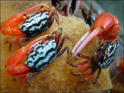 近日,筆者登陸這家網(wǎng)店發(fā)現(xiàn),這些小螃蟹只有三四厘米長,身體黝黑,背部有藍(lán)色或紅色的斑紋,最奇特的是,它們有著一只特別大的紅色鉗子。店主介紹說,大鉗長在右邊的是雌蟹,長在左邊的是雄蟹,剛好男左女右,所以被稱為“情侶蟹”,也叫“鴛鴦蟹”,一對僅僅賣15元。據(jù)店主介紹,他一上午已經(jīng)賣出了二十對,都是情侶來買。對于這種新奇的小螃蟹,筆者查詢了了相關(guān)資料。“情侶蟹”的學(xué)名其實叫“招潮蟹”。其實它并沒有小攤販說的那么浪漫。“招潮蟹”的雄蟹有一只特別巨大的螯,另一只螯很小,但是大螯長在左右的概率是一樣的;雌蟹的兩只螯都很小。所以,所謂的“情侶蟹”其實是兩只雄性的“招潮蟹”。