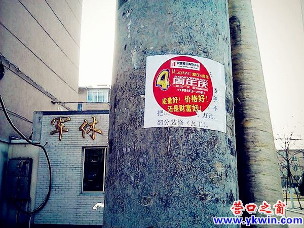 今日上午來(lái)到市軍休所小區(qū)前,看到了這張既袖珍又飽滿的廣告宣傳貼,走訪中一些居民表示,像這種大企業(yè)的牛皮癬廣告平日我們還真就很少發(fā)現(xiàn),雖然沒(méi)有亂貼在自家門(mén)上,但像這樣粘貼在光禿禿的電線桿上也相當(dāng)不盡如人意,無(wú)論是國(guó)家還是地方,都曾三令五申的強(qiáng)調(diào)過(guò)整治牛皮癬廣告的嚴(yán)重性,大商家本應(yīng)該起到帶頭標(biāo)榜作用不是嗎?真心想說(shuō)服自己這廣告是他人惡意陷害,并不是商家自己粘貼上的。附近居民王小姐也有同感,她覺(jué)得做為營(yíng)口大型超市的領(lǐng)頭軍真不該如此,只要物美價(jià)廉有實(shí)力人人都會(huì)選擇它,又何必跟小攤小販一樣搞這樣的牛皮癬廣告呢,影響市容不說(shuō),還在百姓心中失了身價(jià),這一幕實(shí)在不該在市區(qū)內(nèi)上演。由此可見(jiàn),老百姓對(duì)這事的態(tài)度還是很明確的,在此真誠(chéng)的道上一句,想要生意興隆沒(méi)錯(cuò),可是咱這好鋼得用在刀刃上不是?