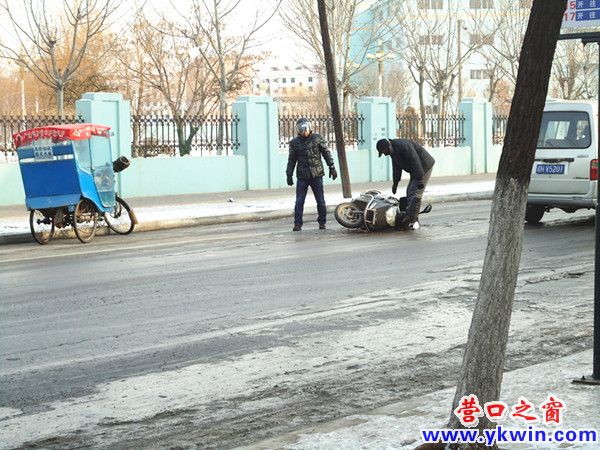 12日下午,營(yíng)口市卷煙廠南門附近發(fā)生了一起交通事故,一輛微型摩托車與一輛人力三輪車發(fā)生追尾事件,事發(fā)后二者均認(rèn)為是由于路面太滑,導(dǎo)致一方滑倒后刮到另一輛車子,故二者達(dá)成共識(shí),相互寒暄一下起身而散,可謂有驚無險(xiǎn)。據(jù)目擊者介紹,當(dāng)時(shí)這名摩托車司機(jī)駕駛在三輪車車主后面,然而三輪車在半道要轉(zhuǎn)彎掉頭的時(shí)候與后面司機(jī)就這么碰上了,起初摩托車車主是為了給三輪車讓路本想拐彎放慢速度,誰知路面積冰甚滑,最后車子被甩在了冰面上。在此提醒各位市民,天氣惡劣,路面不平坦,咱能不騎車盡量別騎車,不管你是什么車,這轉(zhuǎn)眼就要過年了,可別再出點(diǎn)意外讓家人惦記,咱大家都長(zhǎng)點(diǎn)心吧。