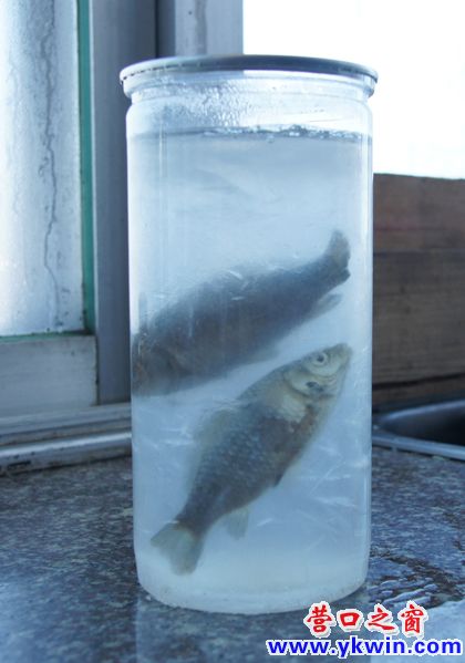 罐頭瓶里養(yǎng)的鯽魚(yú)被凍僵;