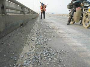 “我們風光小區(qū)里這邊有個碎石場,就在金牛山這條大街上,整條街上都是大卡車掉落下來的碎石。”日前家住營口金牛山小區(qū)的居民陳先生打來電話說。當日,筆者來到該小區(qū)居民所反映位置發(fā)現(xiàn),小區(qū)附近以及中央馬路都覆蓋著大小不一的石頭和碎石,整條路幾乎都被碎石覆蓋著。然而在碎石下面,一些路面已經(jīng)出現(xiàn)了大小不等的裂痕和坑洼。該小區(qū)居民說,自從有了這個坑人的碎石場,風光小區(qū)這片的馬路就一直都沒消停過。居民王女士說,由于路面不好經(jīng)常被大石頭覆蓋,居民進出都要在碎石上行走,崴腳、摔倒的事情時有發(fā)生。小區(qū)其他居民也表示,碎石當前,騎車走路那都是相當不方便,由于碎石較多耽誤通行就連公交車都不能夠在指定站點停靠。對此市民表示十分煩心,在此希望相關責任單位能夠及時對該路面的碎石進行清理,方便市民出行,還百姓寬敞大道。