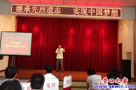 中國共產(chǎn)黨成立92周年之際,我市黨校舉辦了“繼承先烈遺志 實(shí)現(xiàn)中國夢想”為主題的詩歌朗誦活動。參與此次詩歌朗誦的觀眾是我市黨校的教職員工。此次活動我市黨校特邀請營口市誦讀藝術(shù)學(xué)會的誦讀專家獻(xiàn)詩朗誦。在活動中,來自營口誦讀藝術(shù)學(xué)會的十余名誦讀人員紛紛獻(xiàn)上了關(guān)于歌頌先烈精神、贊揚(yáng)先烈們偉大革命精神的詩歌。他們慷慨激昂、斗志昂揚(yáng)的演講,及朗誦人員精美絕倫的表演,贏來了觀眾們的熱烈掌聲。