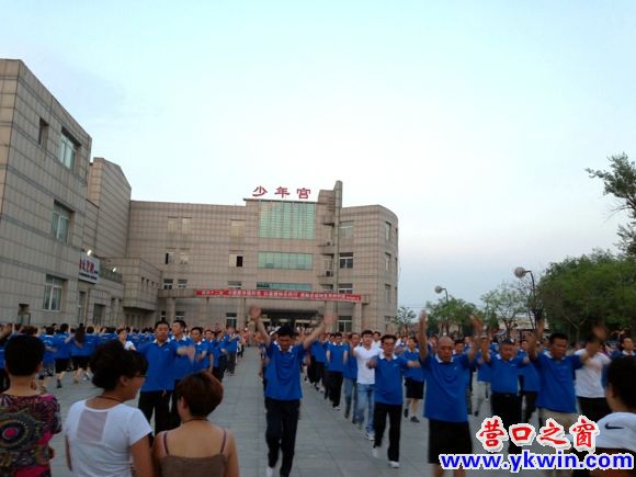 昨晚,營(yíng)口市老邊區(qū)少年宮廣場(chǎng)上有市民們自發(fā)組織開(kāi)展健身娛樂(lè)活動(dòng)。在廣場(chǎng)中央上有一團(tuán)體穿著藍(lán)衣黑褲在進(jìn)行全身運(yùn)動(dòng)鍛煉,他們跟著音響播放的有節(jié)奏的音樂(lè)邊走邊做健身操。他們健身的不亦樂(lè)乎,并且在做健身操時(shí),他們有條不絮,整齊有佳。