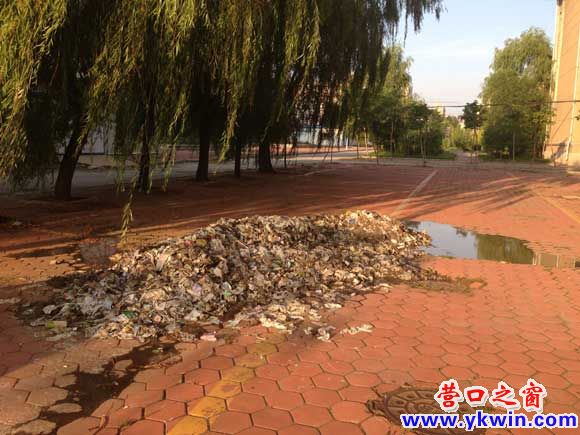 在營口職業(yè)技術(shù)學(xué)院院內(nèi)一處教學(xué)樓后的人行道上有被人為性堆放成積的垃圾堆,在距離垃圾堆50米處都能聞到垃圾堆處散發(fā)出的刺鼻性氣味,實在難聞。