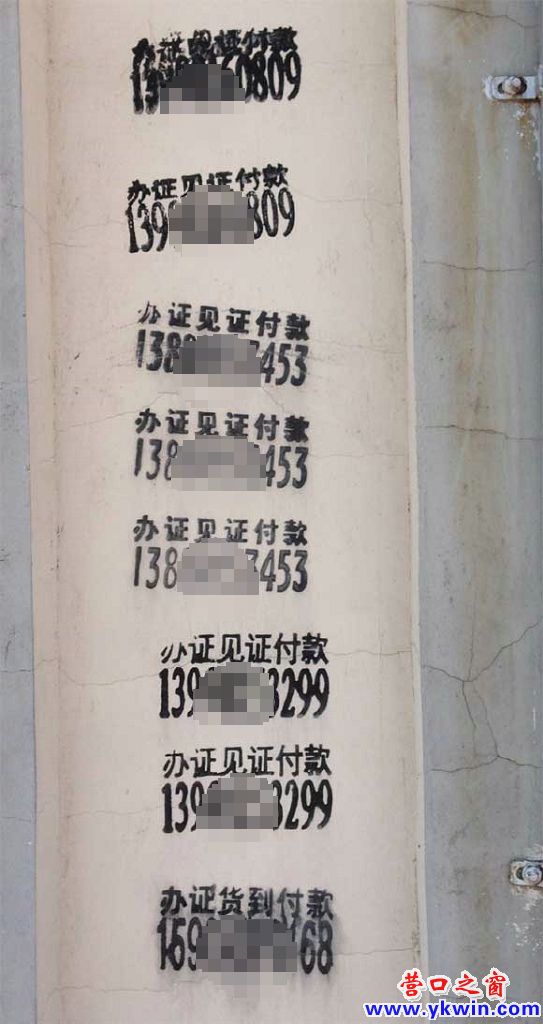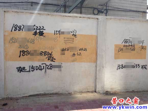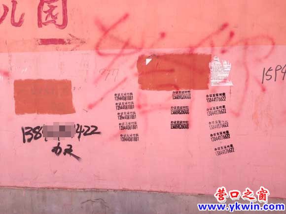 營(yíng)口市第一中學(xué)校門口附近墻上的各種小廣告
