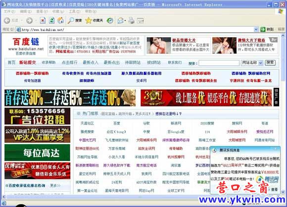 近日,家住?營口市紫竹苑小區(qū)的周先生告訴筆者,自己在家上網(wǎng)時,無意間訪問一些小網(wǎng)站時,電腦右下角會彈出類似QQ彈出消息的“中獎提醒”。