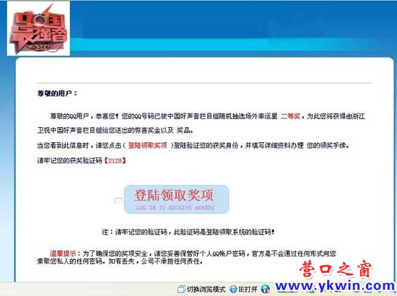 營(yíng)口之窗網(wǎng)站提醒廣大市民千萬不要輕信手機(jī)或者網(wǎng)上發(fā)來的幸運(yùn)大獎(jiǎng)信。