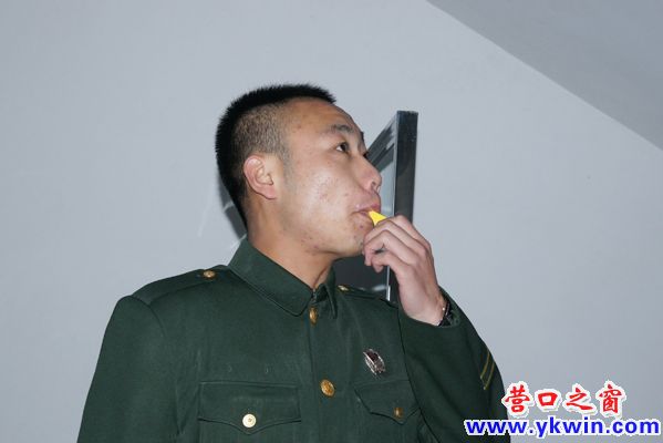 即將告別軍營的老兵金紹友吹響最后一次集合哨;