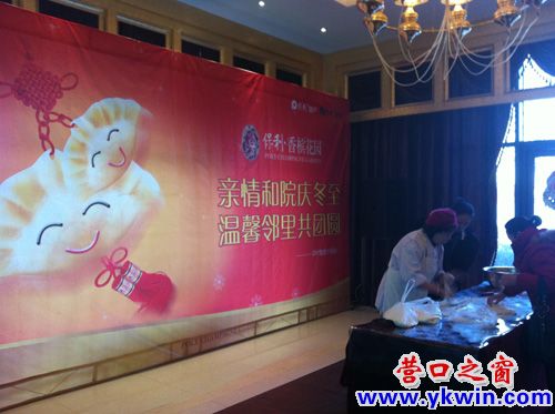 11月22日是2013年的冬至,營口市保利•香檳花園售樓處在冬至當天下午兩點鐘舉辦了主題為“親情和院慶冬至,溫馨鄰里共團圓”的包餃子比賽活動。