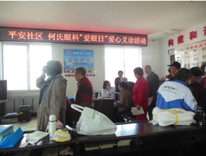 不用去醫(yī)院掛號排隊(duì),眼檢查不花一分錢。為進(jìn)一步提升居民對自身眼部健康的認(rèn)知,做到“早發(fā)現(xiàn)、早診斷、早治療”,2014年4月1日,平安社區(qū)攜手營口何氏眼科醫(yī)院開展了“愛眼日”的愛心義診活動,以了解平安社區(qū)居民的眼部健康狀況。