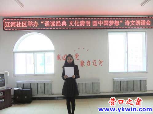 4月4日,清明節(jié)來(lái)臨之際,為宣傳樹立文明健康的祭祀新風(fēng),遼河社區(qū)開展了“我們的節(jié)日·清明” 誦讀經(jīng)典 文化清明 圓中國(guó)夢(mèng)想”詩(shī)文朗誦會(huì).40余名居民踴躍參加。
