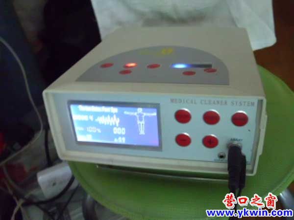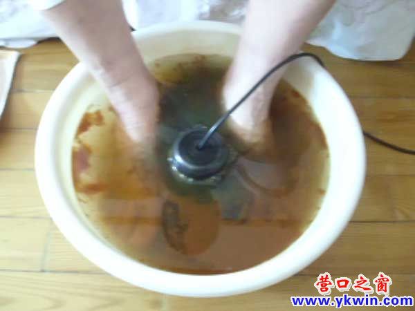 4月29日,我來到營口火車站附近,買了排毒儀的李先生家現(xiàn)場觀看”排毒“演示。按照說明書的要求,李先生把腳放到溫?zé)岬那妍}水盆中,放入秤砣樣的排毒儀套筒,圍上電腰帶和電手腕帶,通電開啟排毒儀。漸漸,盆中水由清變渾。半小時(shí)后就成了醬色。賣方聲稱:這就是從人體里排出的“毒“。