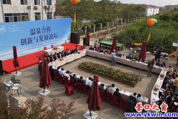5月10日15時(shí),兩岸溫泉產(chǎn)業(yè)合作創(chuàng)新與發(fā)展論壇如期在熊岳河海龍灣度假公寓舉行。中華孝教善業(yè)總會(huì)、中華海峽兩岸與交流協(xié)會(huì)、臺(tái)北紗帽山溫泉發(fā)展協(xié)會(huì)的代表與營(yíng)口開發(fā)區(qū)河海龍灣、憶江南溫泉谷、天沐溫泉、親和源等溫泉企業(yè)負(fù)責(zé)人出席論壇。16時(shí)48分,兩岸溫泉產(chǎn)業(yè)合作項(xiàng)目的相關(guān)負(fù)責(zé)人在河海龍灣度假公寓舉行了簽約儀式。