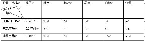 表格為三家市場的商品價(jià)格對照表