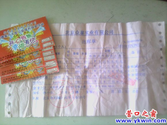 李女士撿到的出庫單上標(biāo)示是北京眾泰實(shí)業(yè)有限公司出庫單,總金額是21萬多,備注信息是五萬元以上參與抽獎一次,所以有四張刮獎卡,另外,在這張出庫單上可以看到兩個印章分別是北京眾泰實(shí)業(yè)有限公司財務(wù)專用章和獎票已領(lǐng),還有公司的地址是北京市西城區(qū)西單大街26號,在刮獎卡上附有聯(lián)系方式。
