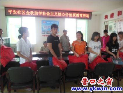 平安社區(qū)積極開展金秋助學(xué)活動,社區(qū)對今年考上大學(xué)的特困職工子女進(jìn)行了逐一入戶調(diào)查,最終確定了對9名特困職工之女進(jìn)行助學(xué),在即將踏入大學(xué)校門之前,對他們開展了社會主義核心價值觀教育。