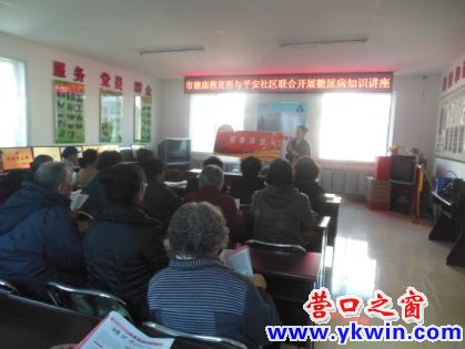 2014年11月14日下午,西市區(qū)勝利街道辦事處平安社區(qū)組織轄區(qū)居民在社區(qū)會(huì)議室開(kāi)展糖尿病知識(shí)講座,此次講座是市健康教育所與平安社區(qū)聯(lián)合開(kāi)展的,社區(qū)請(qǐng)來(lái)市中醫(yī)院趙醫(yī)生來(lái)為居民講解糖尿病的預(yù)防。