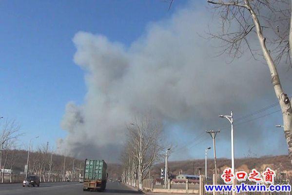 剛下高速公路,就能看到鲅魚圈市區(qū)的濃煙(視頻截圖);