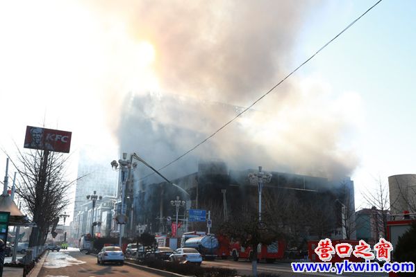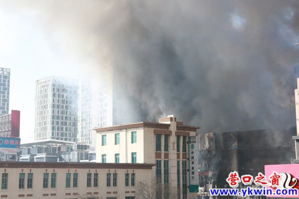 25日,失火大廈冒出的濃煙一直飄蕩在鲅魚圈開發(fā)區(qū)的上空。