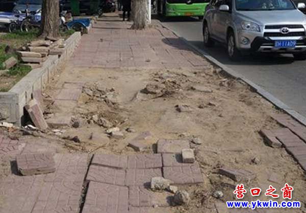 多年來,營口市除主要干道渤海大街、金牛山大街及新建的干道等路旁的人行道完好有人管外,剩余的一些人行道幾乎年久失修無人管理,如:老城區(qū)東西主干道新興大街路旁的人行道,南北主干道東部的公園路、西部的平安路人行道等等。這些人行道路,幾年來從未見過建設(shè)及維修,道板很多地方已經(jīng)沒有了變成了土路或泥坑、有的是商業(yè)門市自己隨意鋪的道板或墊的砂石,簡直是五花八門、亂七八糟。平日里走路高低不平,雨天里就變成水坑湖泊。