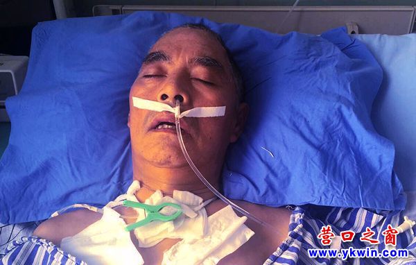 事情經(jīng)過:2016年11月14日早上9點左右,楊永發(fā)在行至營口市金牛山大街鏡湖鳴人新苑小區(qū)的一路口處被遼JF8885的外地重型貨車撞至重傷,路人撥打120將楊永發(fā)送至營口市中心醫(yī)院,入院時患者重癥顱腦損傷,顱底骨折,流血不止,發(fā)生腦疝,肋骨撞斷七根,其中一根折了三段,把肺子扎破引發(fā)重癥肺炎,生命垂危。醫(yī)院緊急實施開顱手術(shù),頭骨摘除1/5,氣管切開,頭部鉆孔引流,隨后進入ICU重癥監(jiān)護室搶救。