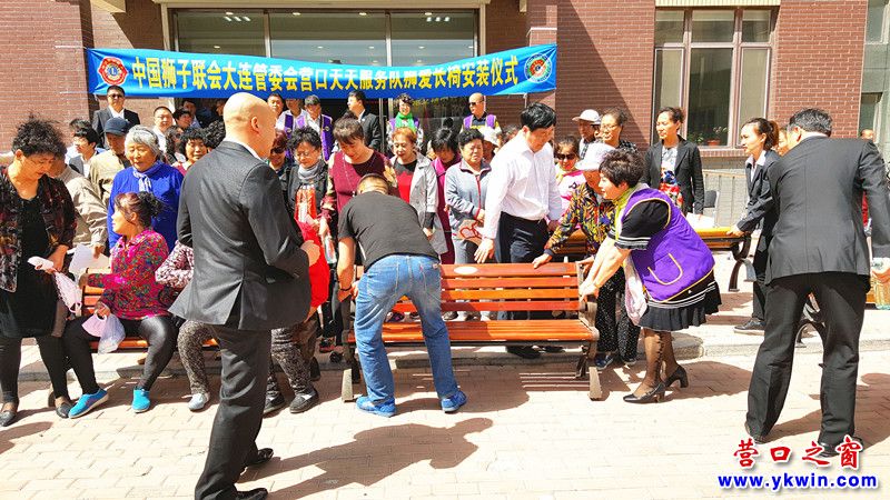 2017年5月12日,西市區(qū)濱海辦事處鑫海社區(qū)聯合中國獅子聯會大連管委會營口天天服務隊在社區(qū)文化廣場舉辦捐獻長椅安裝儀式。西市區(qū)政協主席朱杰、營口市民政局主任賈福明、西市區(qū)民政李局長、濱海辦事處主任柳耀鵬等領導都應邀出席現場,中獅聯大連管委會專區(qū)主席朱曉兵等獅友也齊聚安裝儀式現場。