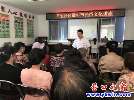2017年5月24日下午,勝利街道辦事處平安社區(qū)舉辦民風(fēng)民俗話端午知識(shí)講座,平安社區(qū)邀請(qǐng)社區(qū)文化志愿者王老師為轄區(qū)居民進(jìn)行一場“端午節(jié)民俗文化"知識(shí)講座。