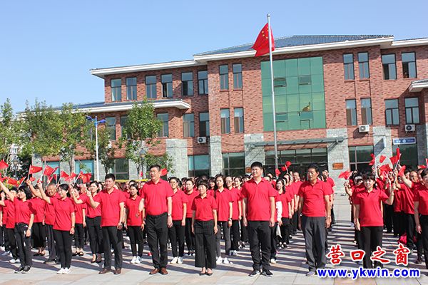 在升旗儀式后,大家組成國旗的方陣,手持祝福祖國的葵花圖案,共同高呼“不忘初心,繼續(xù)前進,團結(jié)奮進,振興中華,祝福偉大祖國繁榮昌盛,國泰民安”的口號,把升旗儀式的活動現(xiàn)場推向高潮。