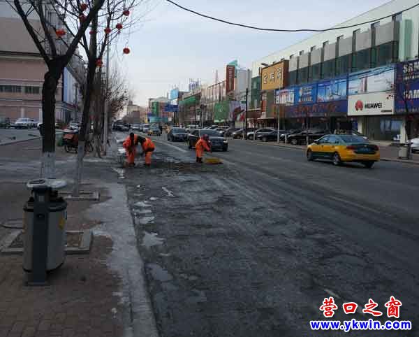 2月8日中午,網(wǎng)友在營口市新興大街興隆超市附近,看到一組環(huán)衛(wèi)工人正在清除路面大量積冰的場面。網(wǎng)友細(xì)一想,最近沒有下雪,哪來這么大面積的冰面呢?