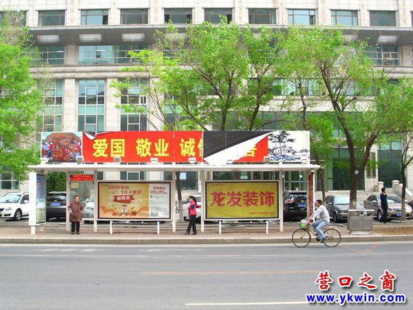 5月9日,走在營(yíng)口市渤海大街上,映入眼簾的是一幅花紅柳綠,清新整潔的美景,令人賞心悅目??墒堑搅饲嗌倌陮m附近看到了公交車(chē)候車(chē)棚頂?shù)钠茡p廣告時(shí)眼前的愉悅卻打了折扣。