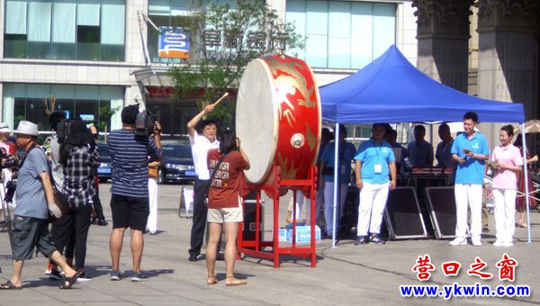 8月9日,營(yíng)口的最高氣溫達(dá)到34攝氏度。營(yíng)口市首屆“營(yíng)口銀行杯”百姓廣場(chǎng)舞展演開(kāi)幕式在驕陽(yáng)似火的青少年宮希望廣場(chǎng)隆重舉行。9時(shí),主持人宣布:下面請(qǐng)營(yíng)口市委副書(shū)記吳紹維擊鼓宣布首屆“營(yíng)口銀行杯”百姓廣場(chǎng)舞展演開(kāi)幕。這時(shí)吳書(shū)記從主席臺(tái)來(lái)到一面?zhèn)攘⒌拇蠊倪叄?!咚!咚!耗時(shí)3秒用鼓槌擊鼓3下,然后他沒(méi)講一句話,只向廣場(chǎng)上的展演者和觀眾揮了揮手就回到了座位上觀看展演,全場(chǎng)千余演員和觀眾親眼見(jiàn)證了這個(gè)短暫的精彩瞬間。