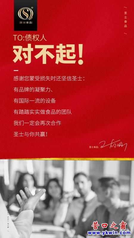 圣士,是營口的圣士,也是營口市民的圣士。我們有理由堅信:營口“圣士公司”一定會在新的“天時、地利、人和”的大環(huán)境中重新站起來!王有剛懇請大家的理解與支持,與圣士一起并肩前行。