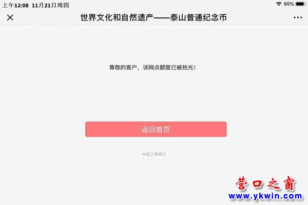 又一場(chǎng)惡戰(zhàn),泰山幣瞬間搶沒(méi)了,到0點(diǎn)08分,營(yíng)口全市的預(yù)約數(shù)目為0!還好,約到一筒(20枚)。感謝佛祖、阿拉真主、耶穌天主,阿彌陀佛阿米乃阿門(mén) 哈