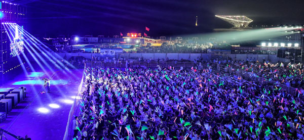山海廣場(chǎng)大型音樂(lè)演唱會(huì),全明星陣容,聲勢(shì)浩大,氣勢(shì)磅礴,燈光璀璨,9600個(gè)位置,座無(wú)虛席,近距離觀看明星演唱會(huì),近萬(wàn)人享受視聽(tīng)盛宴。