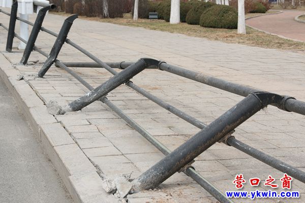 (營口之窗“百姓說事”)3月31日,營口市西市區(qū)濱河大街中段(紅旗廣場西行)路邊的人行道護欄“躺”在地上,非常扎眼。