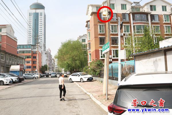 當天下午,筆者現(xiàn)場看到,在營口市站前區(qū)中心街(小八路)與藝林路的丁字路口處(長城公寓西南角),大白天路燈亮著的情況確實存在。