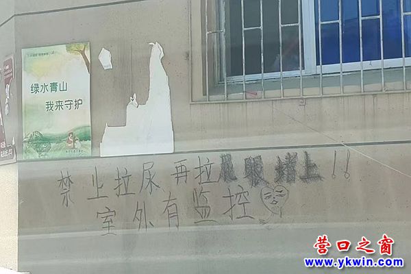 (營口之窗網“百姓說事”)日前,在營口市某小區(qū)一居民樓看到,墻體上寫有 “禁止拉尿 再拉屁眼堵上?。∈彝庥斜O(jiān)控。”的字樣十分刺眼,對此,多數市民感覺“很不舒服”,這種視覺上的污染,也是一種垃圾,實際上也是在污染環(huán)境。