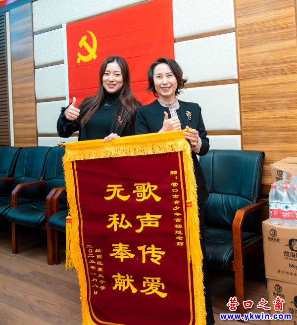 1月15日,東風小學領導來到營口市青少年宮給楊旭老師送來一面承載著深深感激之情的錦旗。青少年宮謝主任帶領領導班子熱情接待。用藝術傳遞正能量,讓正能量在歌聲中傳唱!