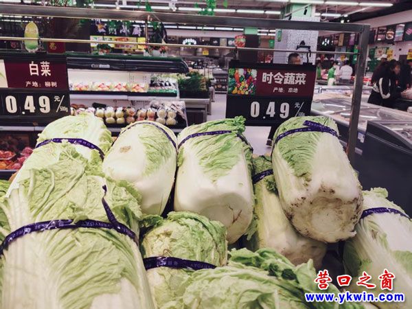 3月2日,來到營口市錦聯(lián)超市,見到冷藏的大白菜才賣0.49元一斤,同比下降了一半多。