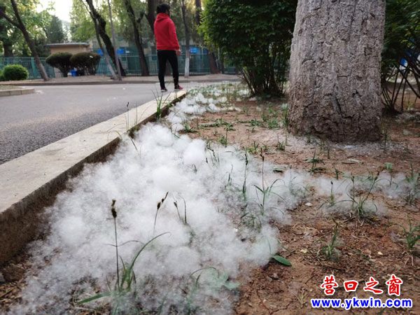 眼下,正值春夏之交。5月6日,營(yíng)口市街頭的柳絮突然多了起來,它漫天飛舞就像下雪了一樣。走進(jìn)人民公園,發(fā)現(xiàn)路邊、草地和樹叢里柳絮更是聚成了一堆堆或一片片的。