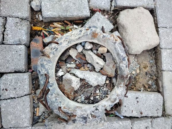 從銹跡斑斑的外露鋼筋來看,它已在此滯留很久了。這塊“絆腳石”顯而易見,為何長期沒人把它挖走?難道你們心中沒有行人?