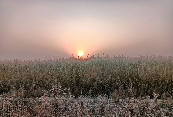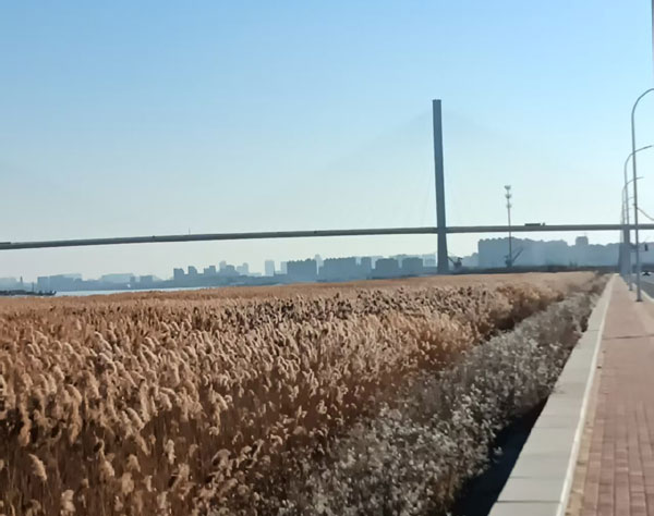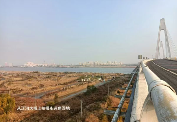 滄海桑田之變和城市工業(yè)化之因。促使?jié)竦剡@個城市之肺逐漸縮小。數(shù)年以來,欣聞我市的各級政府本著”綠水青山就是金山銀山”的理念逐漸加大治理營口濕地的力度。經(jīng)過系統(tǒng)修復,如今,逐步的恢復了濕地生物的多樣性,尤其是,這里成了候鳥重要的遷涉停歇地,野鴨、海鷗、白鷺、大雁等在此盤旋。而且臨水而息,鳥浪頻繁上演。尤其是一對丹頂鶴,于二零二二年,選擇在此安家,并且孵化出了兩只幼鶴,吸引了無數(shù)人。因此這片水域被命名為仙鶴灣。如今的永遠角濕地告別了昔日的臟亂現(xiàn)象,成為市民和游客休閑觀光的好去處。目前,營口市永遠角已納入城市發(fā)展大局,規(guī)劃建設濕地公園,正在建設各種旅游觀光的設施。這片以蘆葦為主要植被的濕地是時間的收藏家,它收獲著候鳥跨越千里的足跡,收藏著夕陽萬道金輝,也收藏著工業(yè)城市最終最珍貴的寧靜。人們更加懂得永遠二字的珍貴是永遠角濕地生生不息的循環(huán)。眼下已到初冬時節(jié),但是天氣晴朗,筆者再次游覽永遠角,撫今追昔,加深了對家鄉(xiāng)的美好印象。于是又吟道: