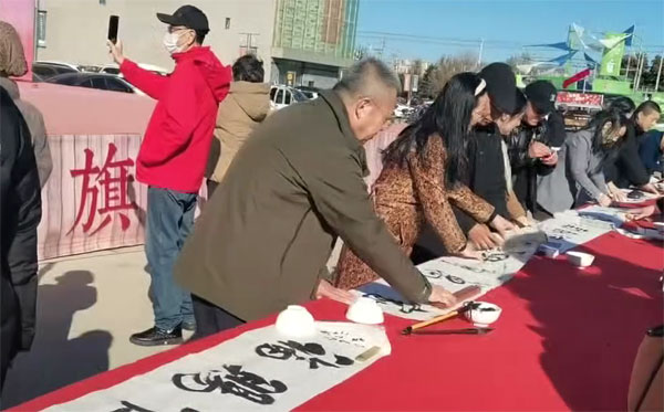 有著300多年歷史的紅旗大集,人聲鼎沸,熱鬧非凡,新鮮優(yōu)質(zhì)的濃副產(chǎn)品、特色文創(chuàng)種類繁多,另人目不暇接,煙火沸騰處,東北風(fēng)味濃。舞臺旁翰墨飄香,書法愛好者們現(xiàn)場潑墨,揮毫行韻,眾人爭相圍觀,好一派繁榮景象。這里鄉(xiāng)土底色、市井煙火與時代活力融與一體,一場以文化為靈魂的冬日盛宴,令人流連忘返!