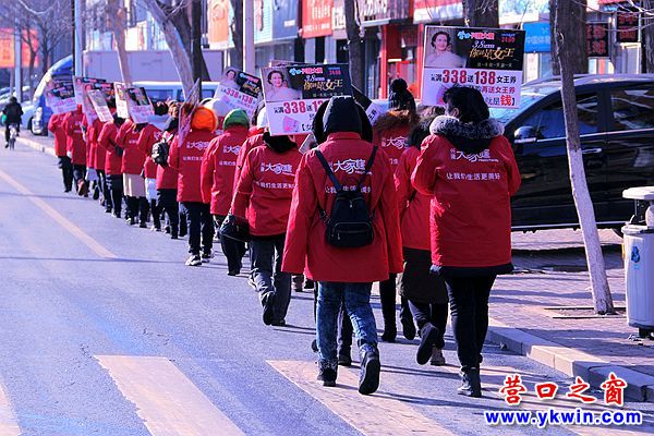 昨天下午,筆者在營(yíng)口市電子文化商城路口交匯處看到,一支流動(dòng)的廣告“大軍”浩浩蕩蕩地由東向西沿新興大街行進(jìn)。