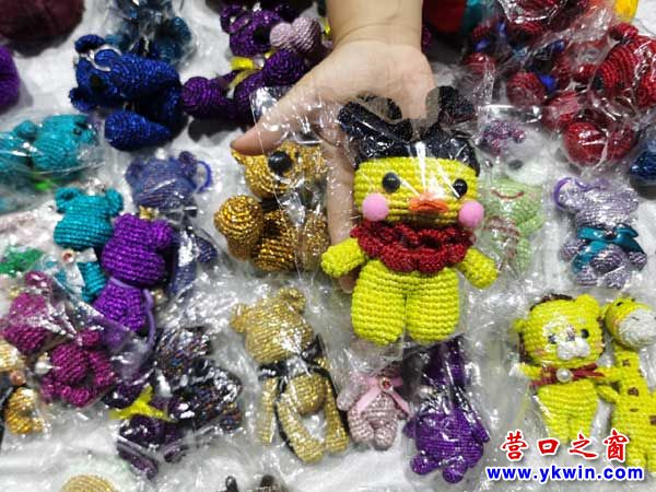 路邊用鉤針現(xiàn)場制作的空心紗工藝小飾品。