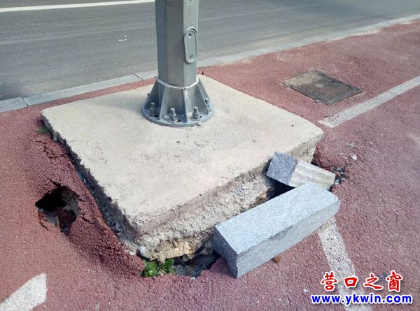 8月25日,路過營口市建設(shè)街, 發(fā)現(xiàn)位于該街與東新路口西30米南面的粗大監(jiān)控桿因根部虛空出現(xiàn)了嚴(yán)重傾斜,傾覆似乎進(jìn)入倒計時了,而它的下面就是車流。