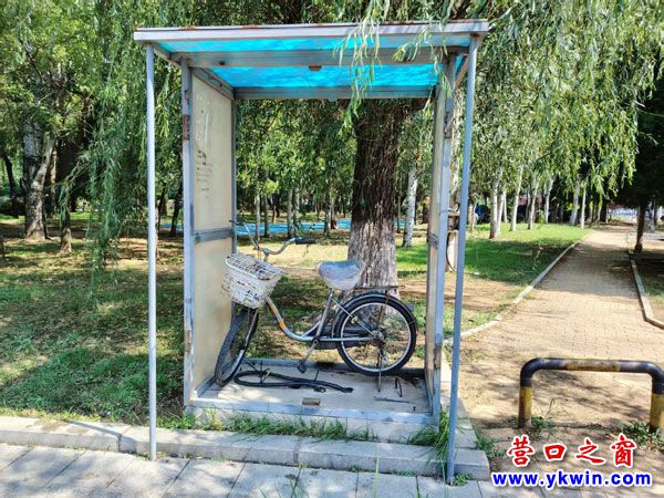 水里有寄生蟹,樹上有鵲巢鳩占。營口市泰和園公園門口有輛自行車鉆進(jìn)了廢棄的騎士換電服務(wù)棚。